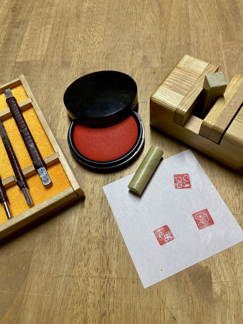 とんぼ玉が冷える間篆刻にも挑戦
