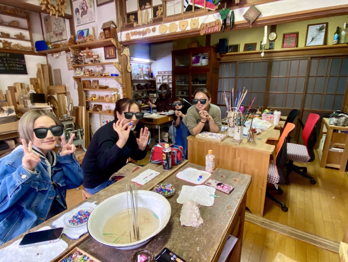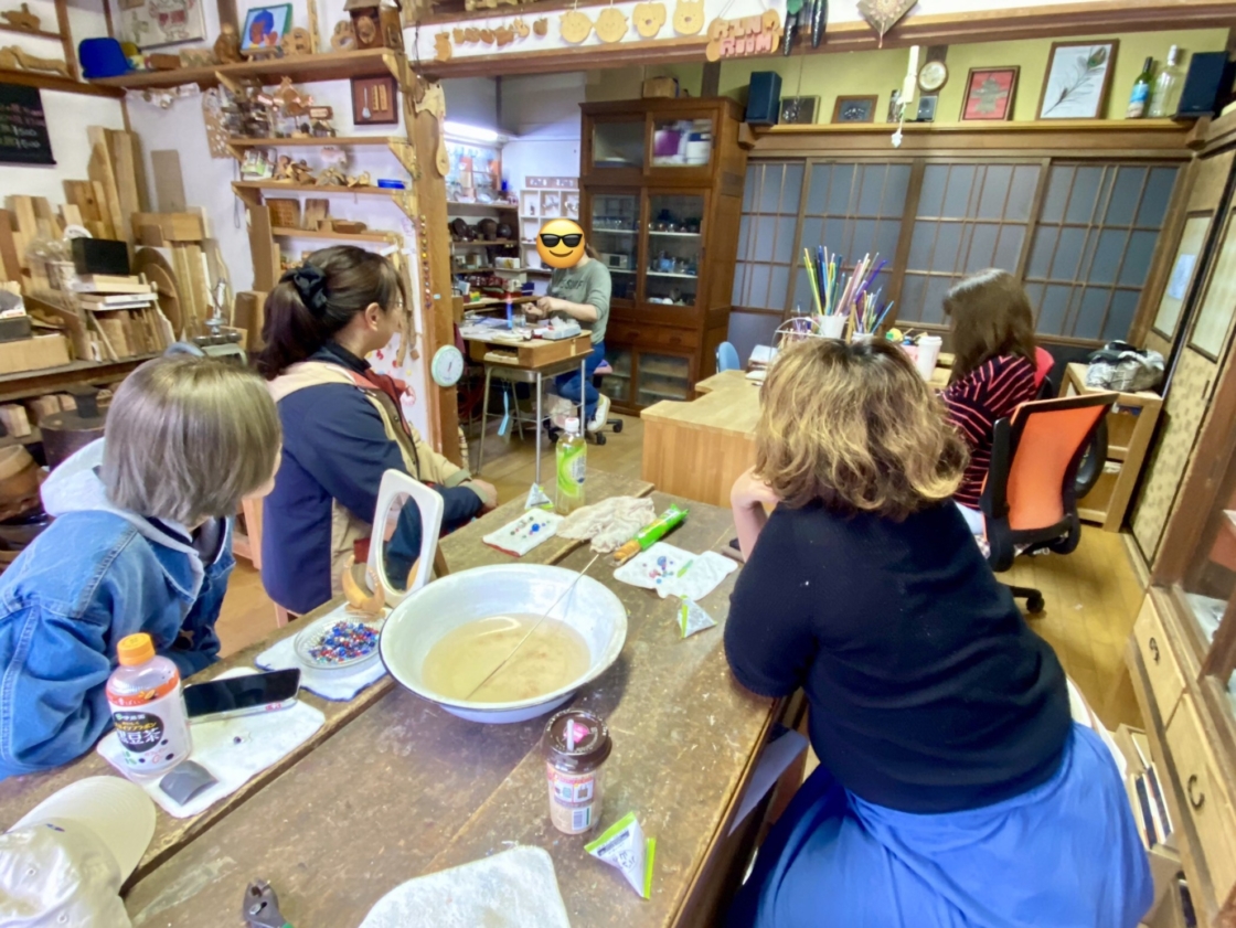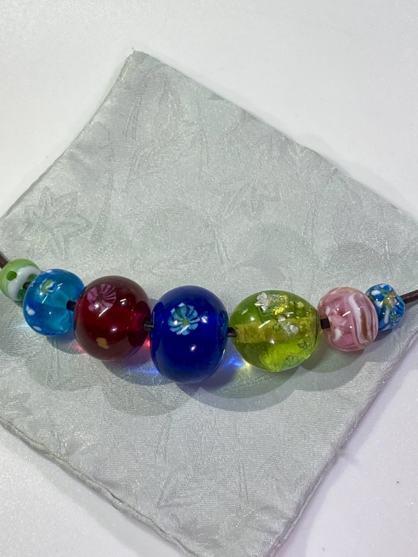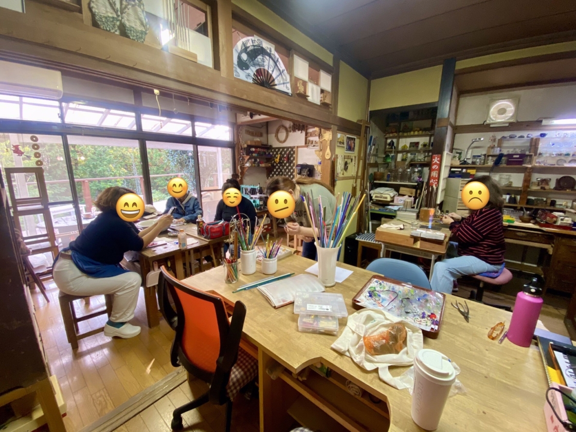 はじめましての人何回も来てくれている人 ガラス棒を見ながらイメージを膨らませてひたすらとんぼ玉づくりを楽しんでいました