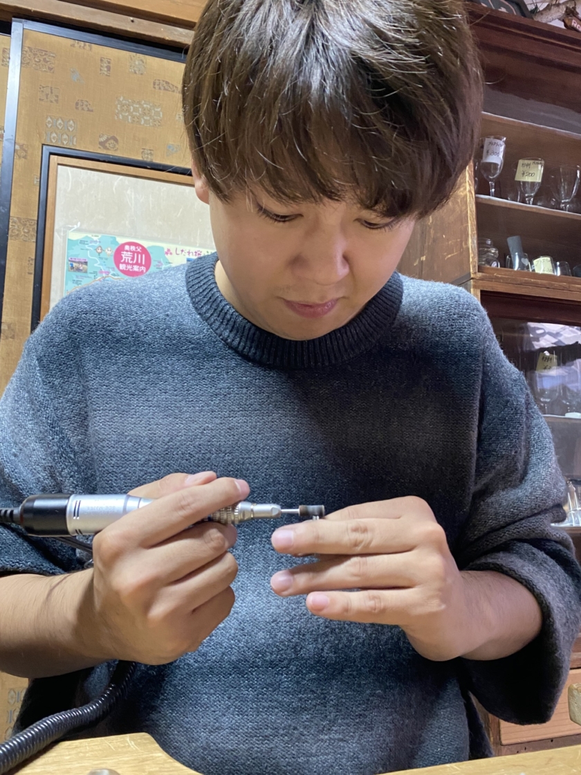 刻印打ち 糸鋸でラインを入れたり サイズ調整 磨いたり