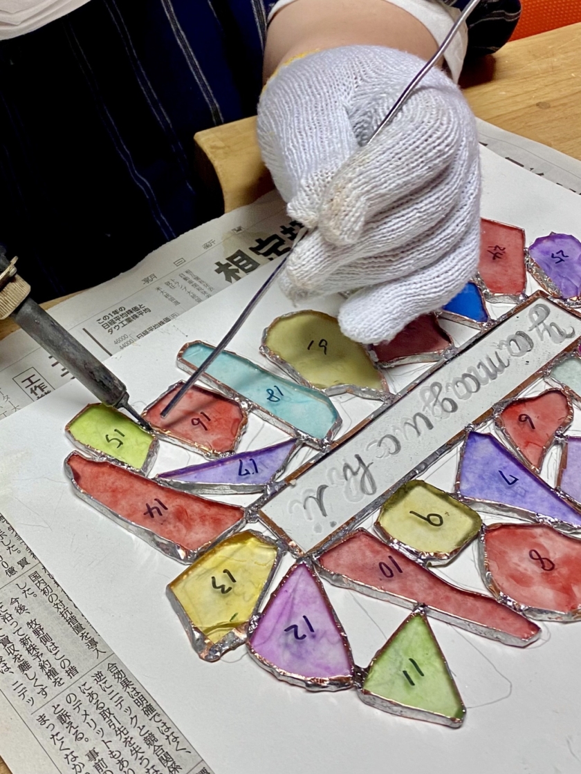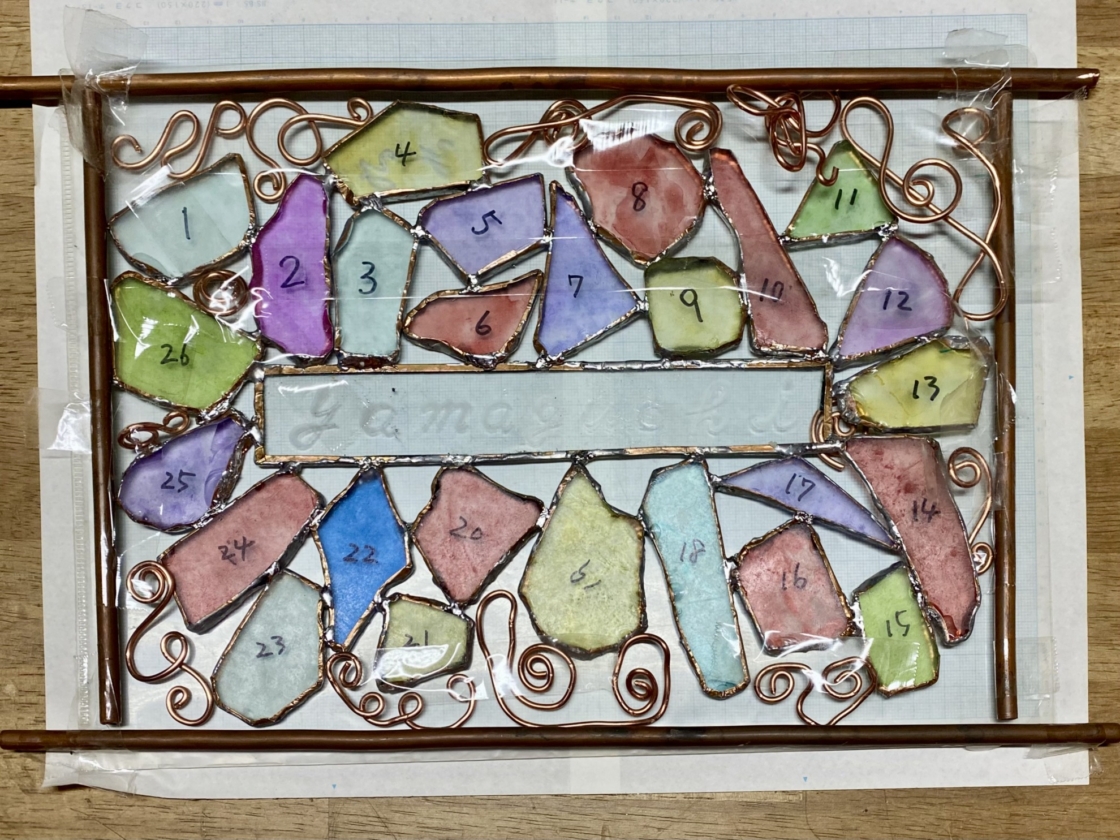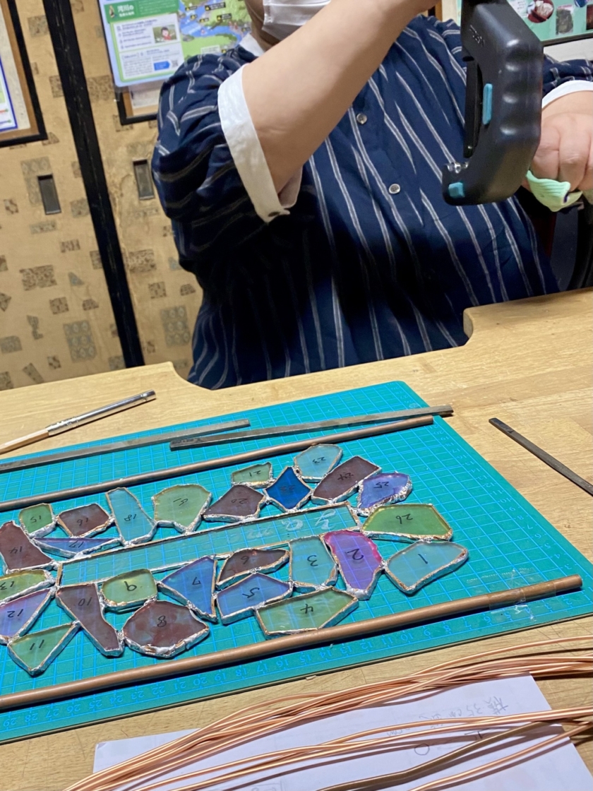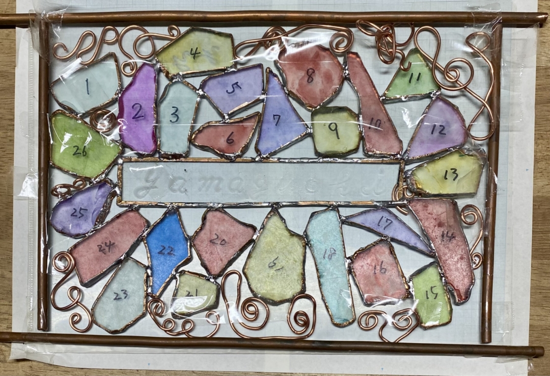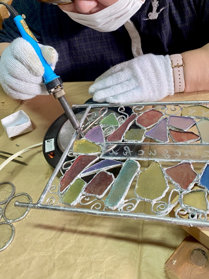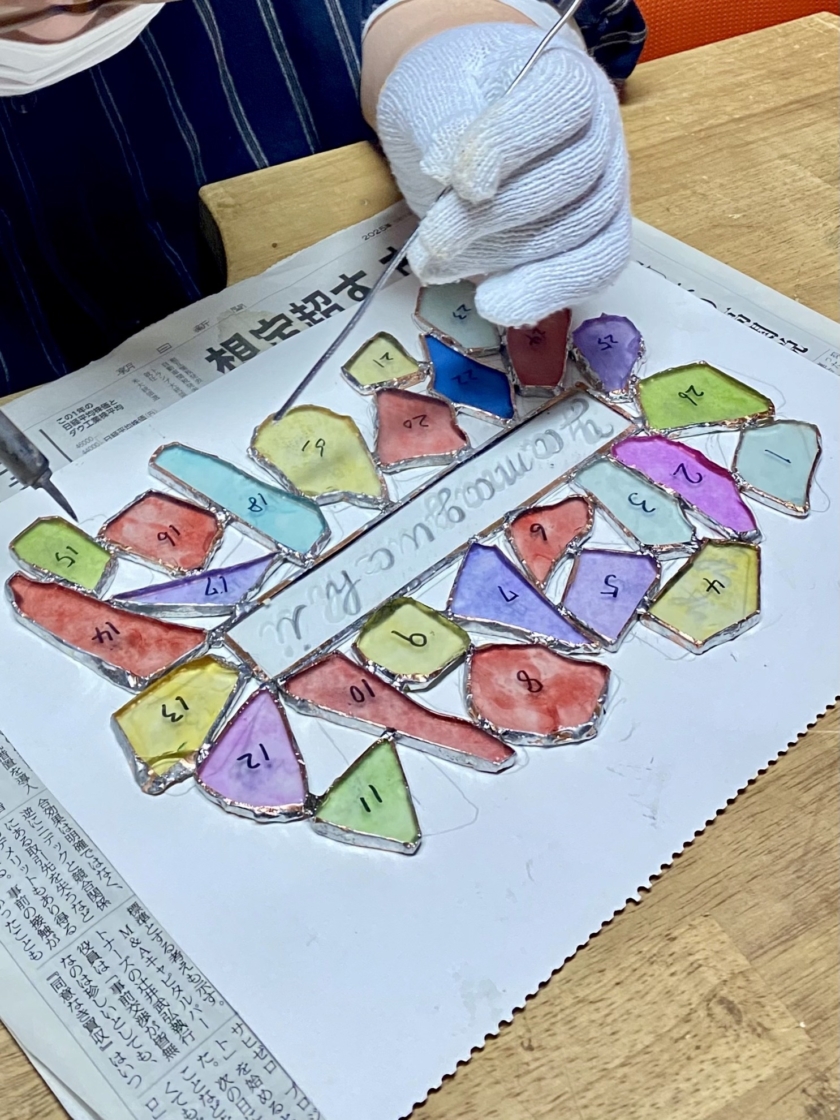 フワッとしたイメージで表札が作りたいな〜ってことで板ガラスを準備しながらなんか可愛いガラスがあったんだけど使えるかしら?