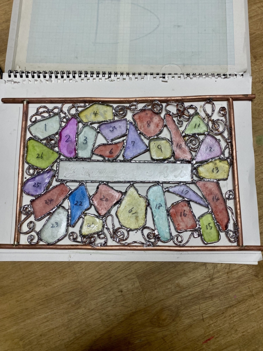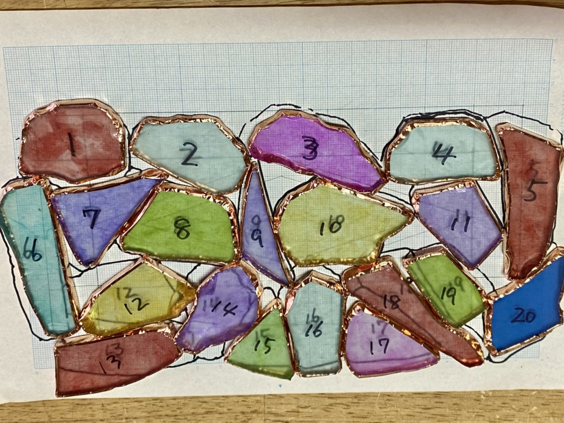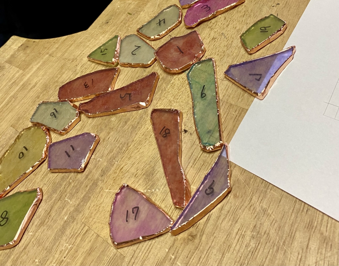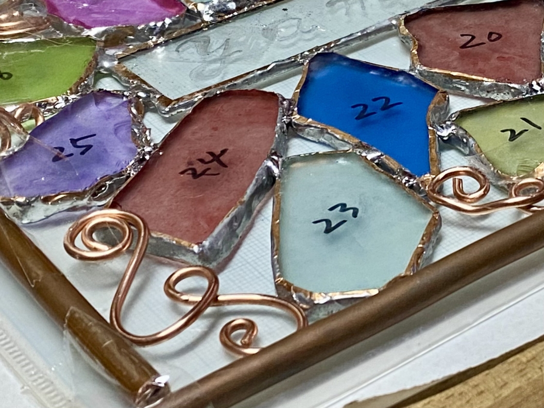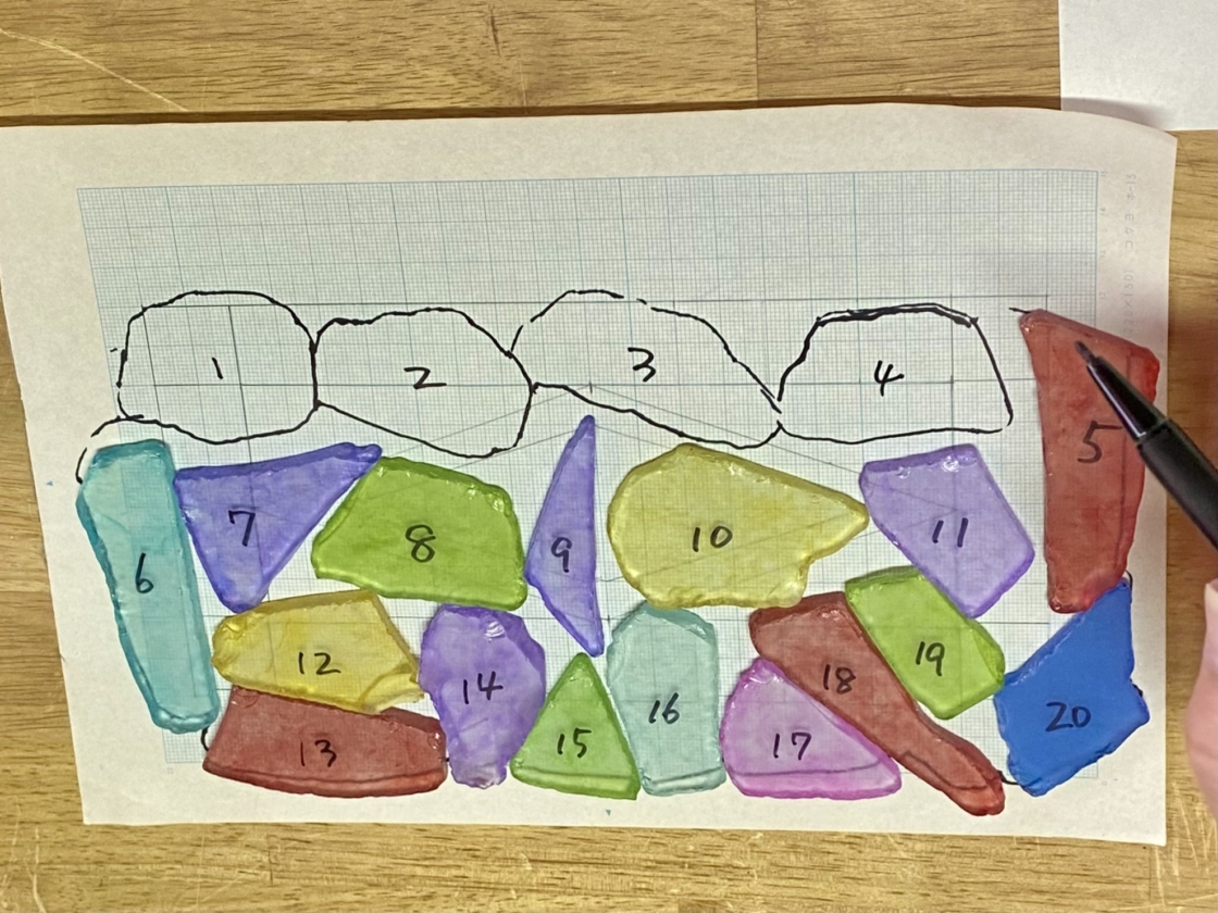 フワッとしたイメージで表札が作りたいな〜ってことで板ガラスを準備しながらなんか可愛いガラスがあったんだけど使えるかしら?