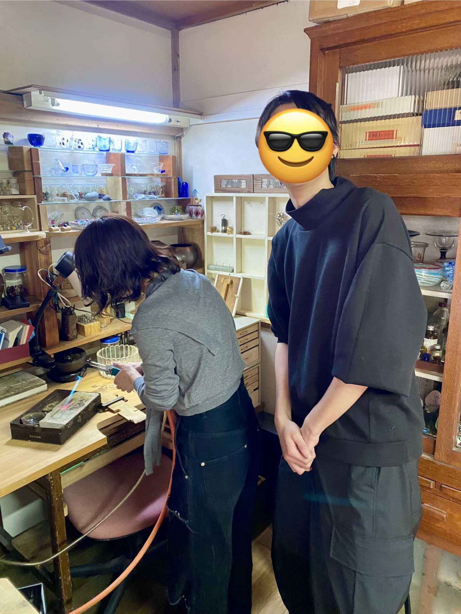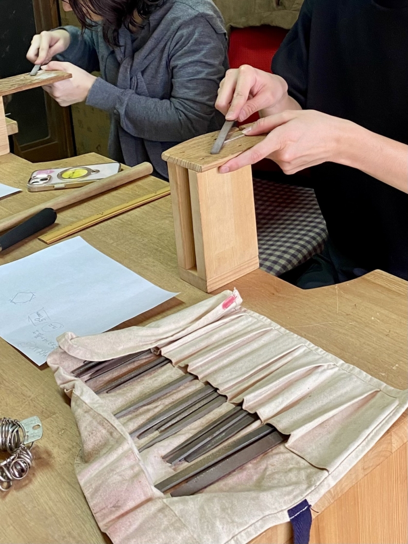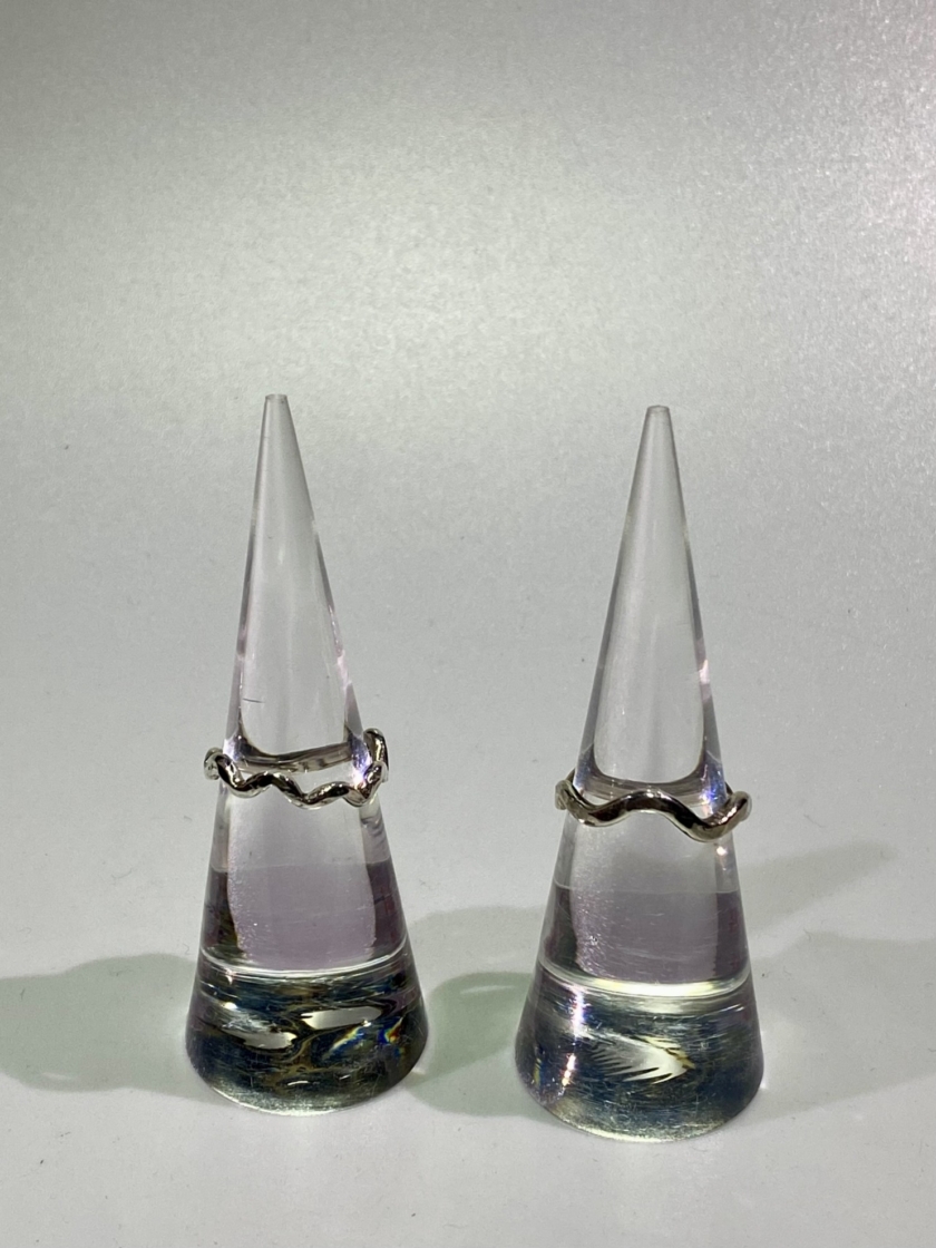 材料どり 銀の塊を叩いて棒にしてローラーで延ばして細くしていきます