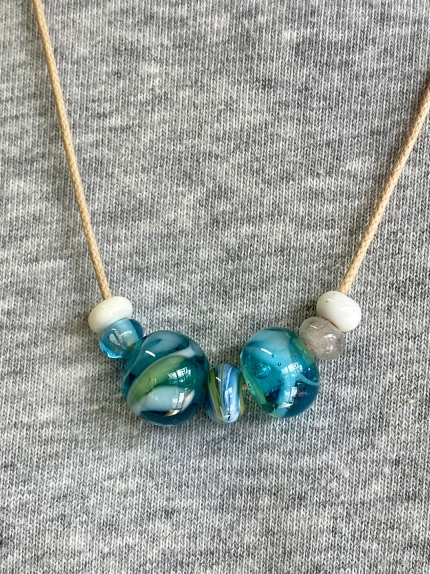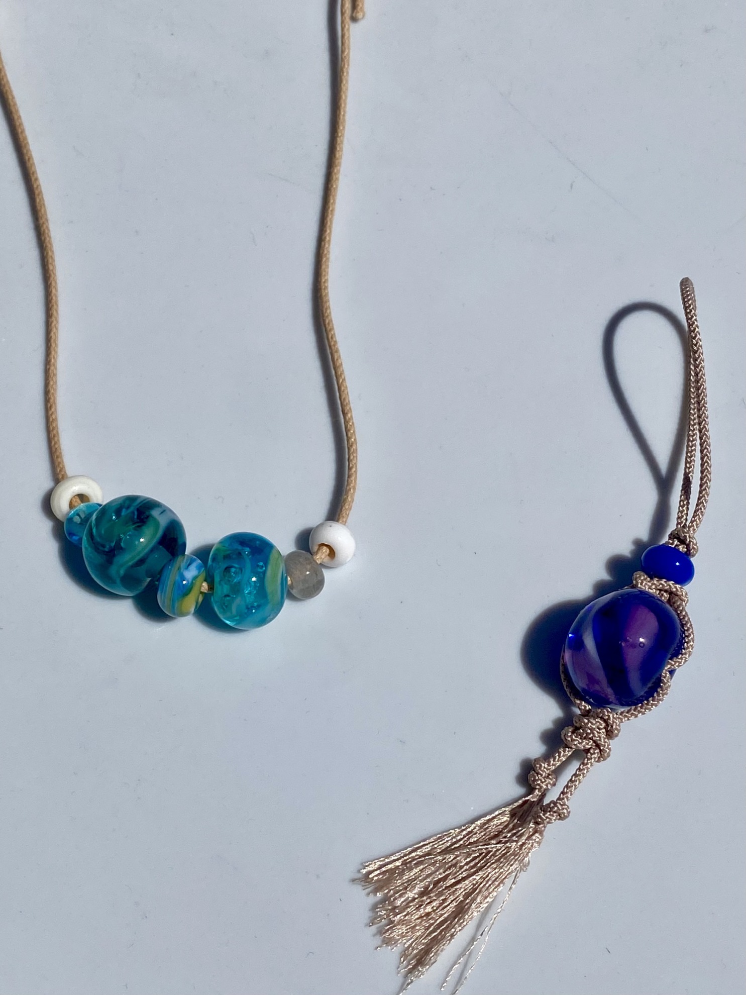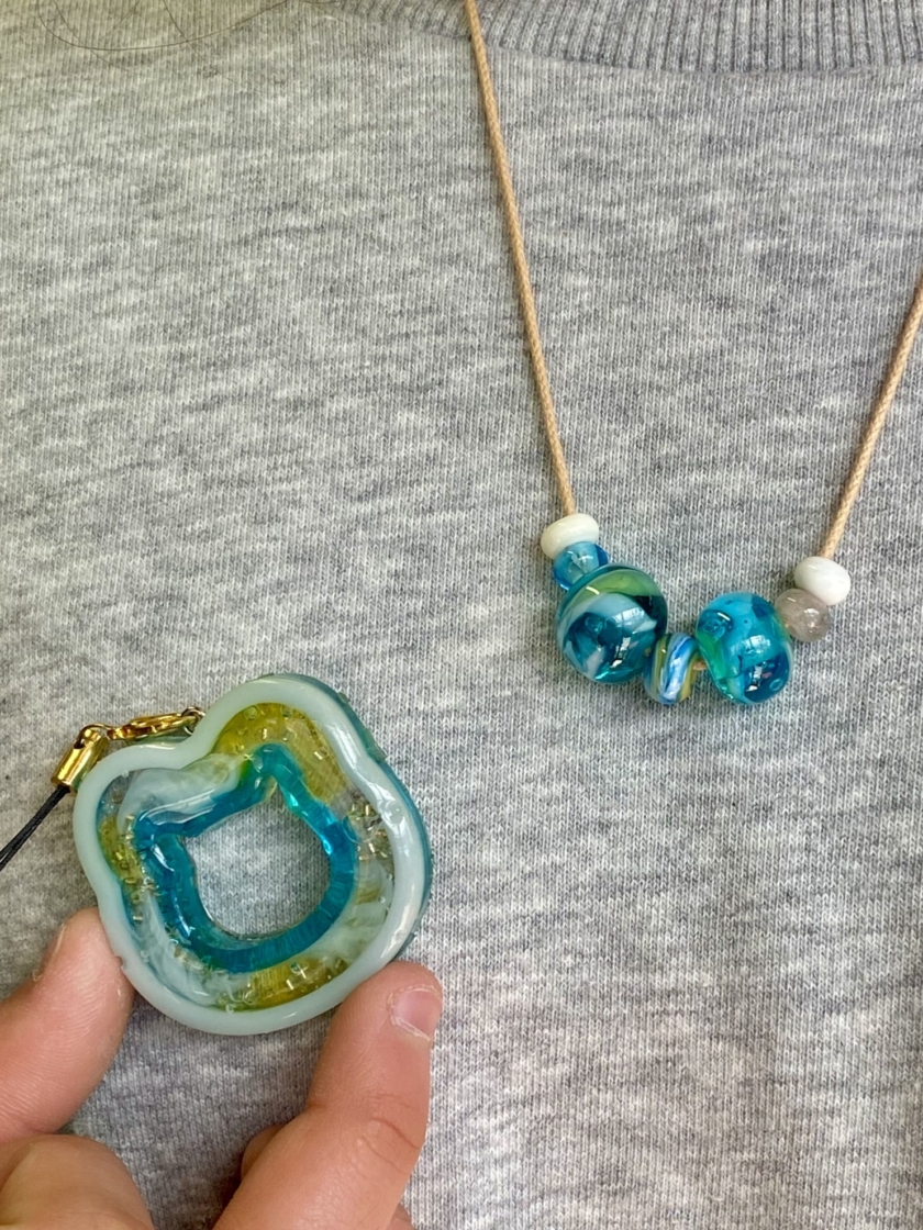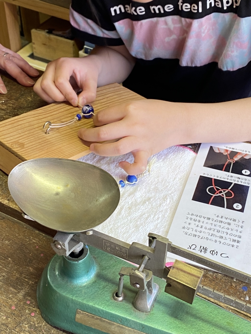 自分で作ったチャームと同じ色合いのとんぼ玉に挑戦!