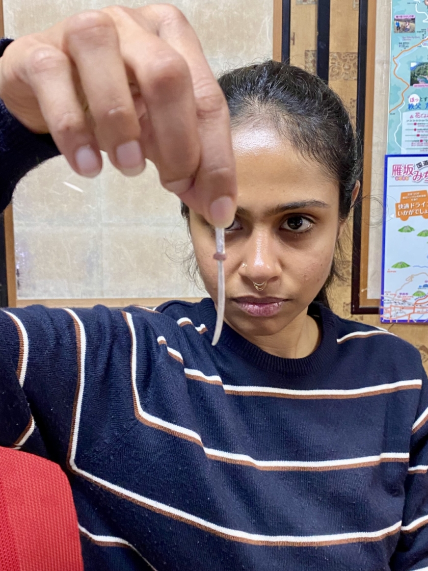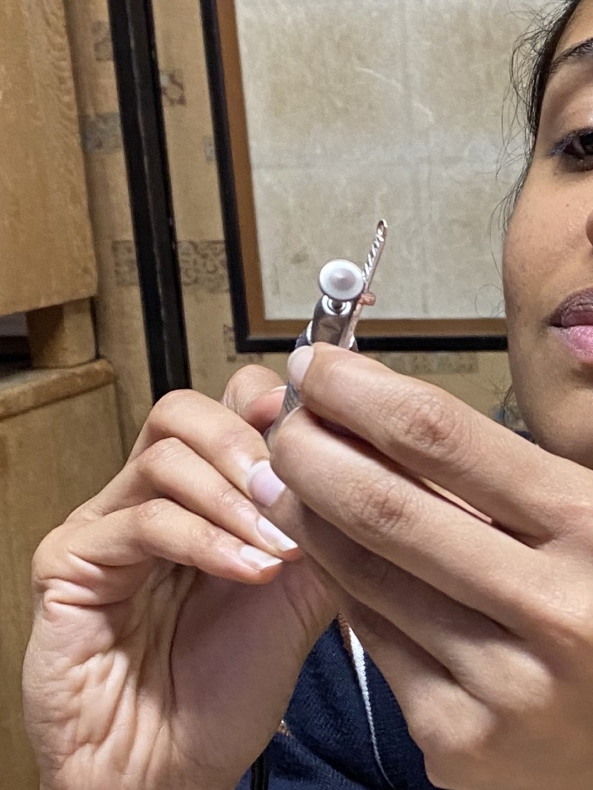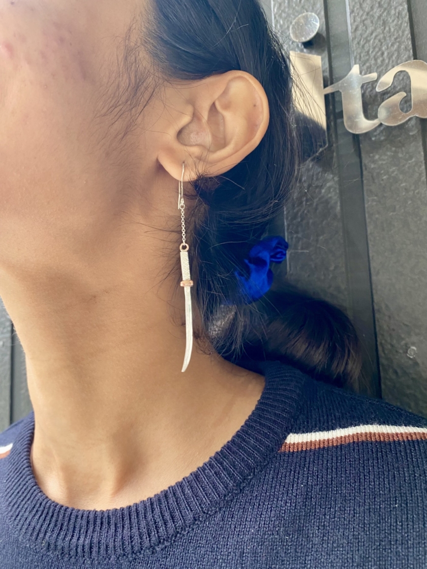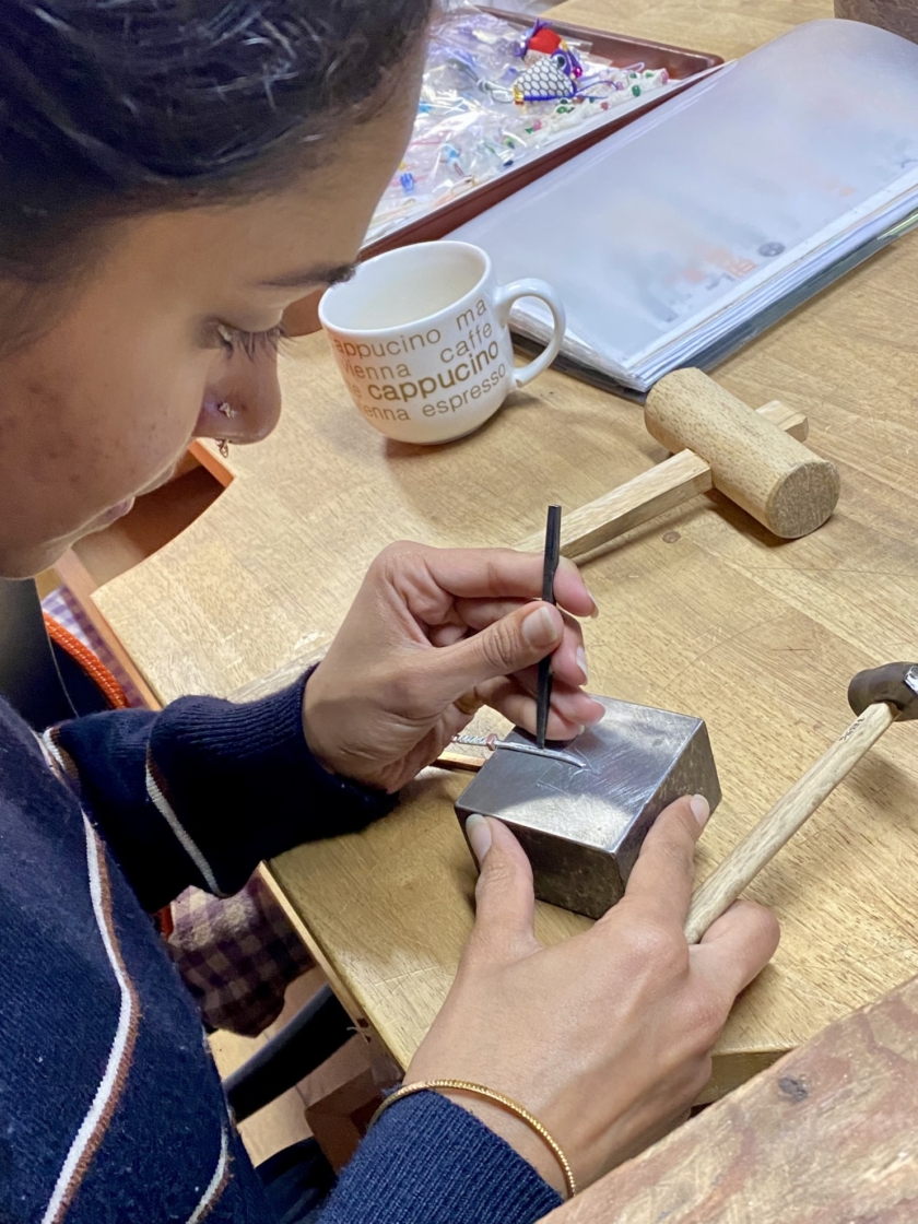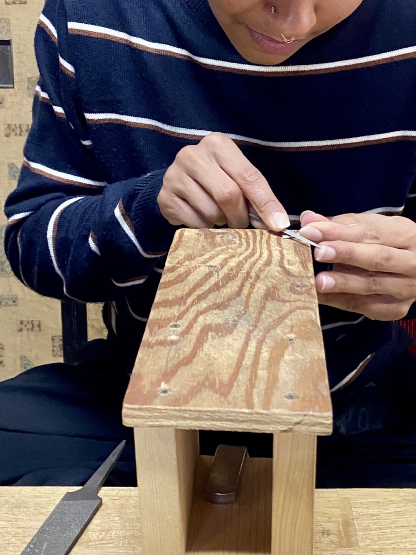 刀のピアスづくり Post date 2026.04.07 Post categories In シルバーアクセサリー, 工作室情報, 彫金 カタコトの英語 カタコトの日本語 身振り手振り 初めてのヤスリがけ 思うようにいきません サイズ感を方眼紙で確認しながら 鍔は銅にしました こんなに小さいのにこだわりの「樋」を入れて 反り加減の調整 最後の磨き お気に入りが出来上がって良かったですね 共有:TwitterFacebook Tags シルバーピアス, シルバーピアスづくり, 刀, 奥秩父, 秩父, 秩父体験工房 投稿ナビゲーション ←Previous post:春休み とんぼ玉づくり コメントを残す コメントをキャンセルコメント 名前 * メール * サイト 次回のコメントで使用するためブラウザーに自分の名前、メールアドレス、サイトを保存する。