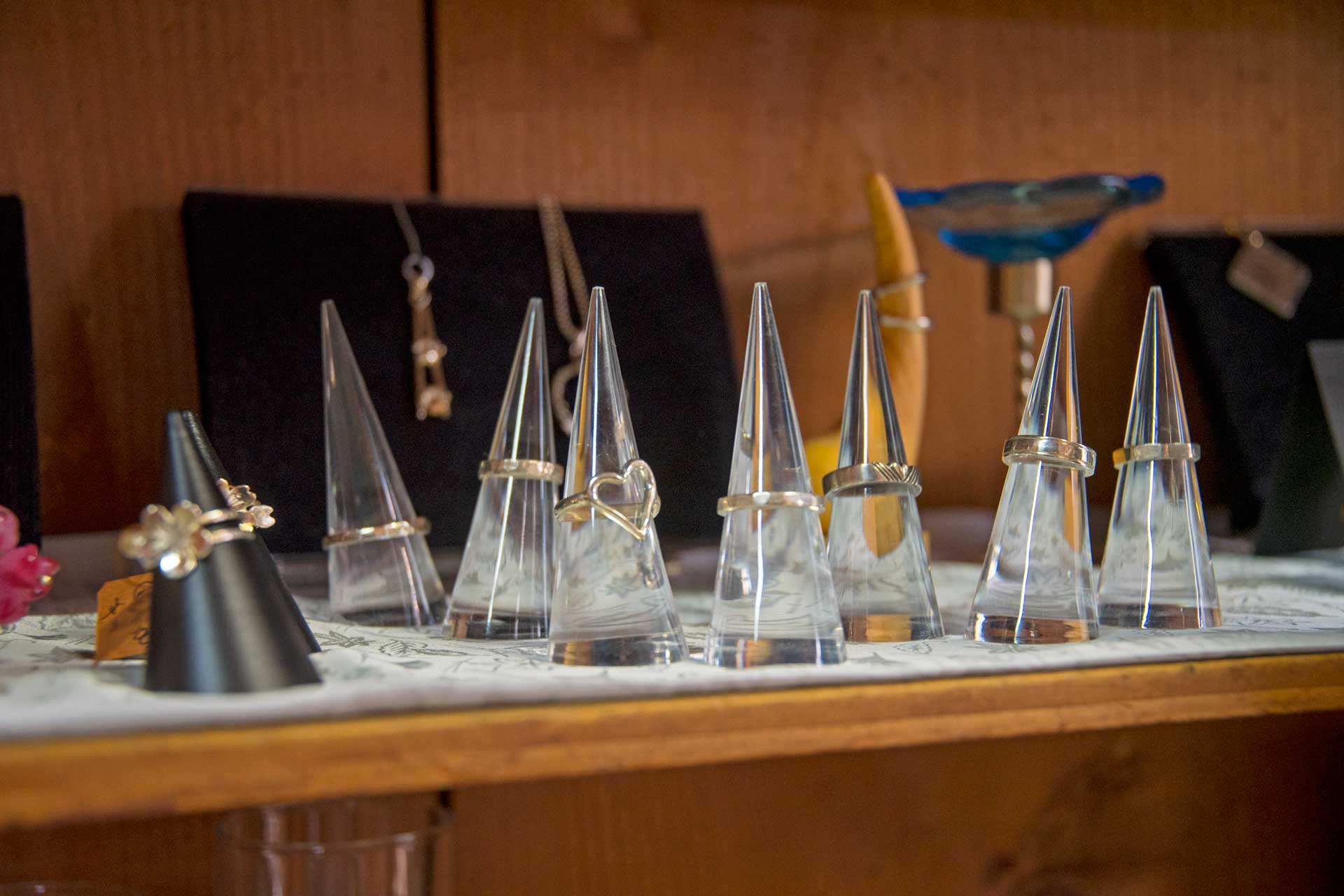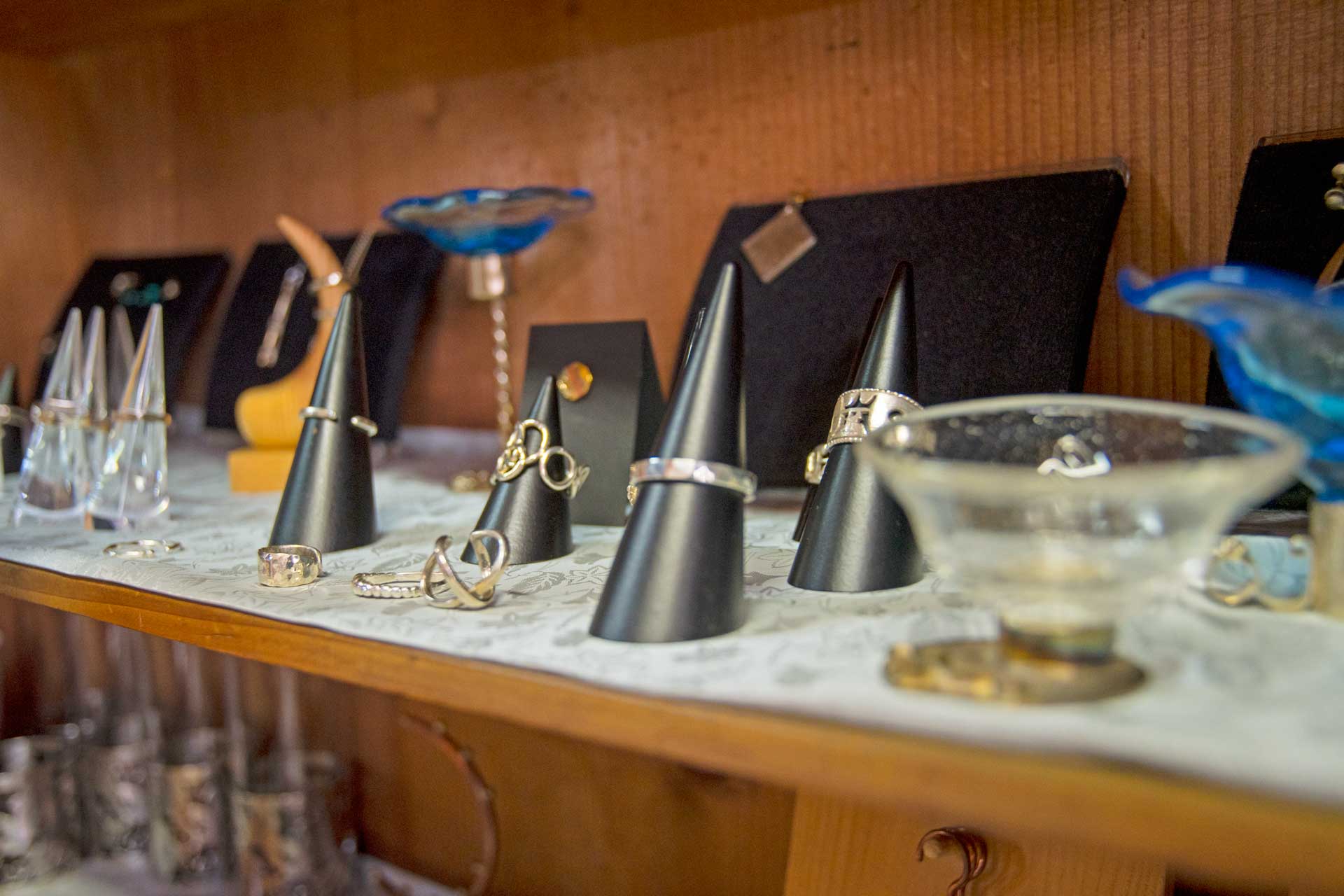 シルバーアクセサリーやとんぼ玉、硝子工作、木工、季節の草花細工、布細工、篆刻など、お客様のアイデアで一日中のんびり創作していただけます。